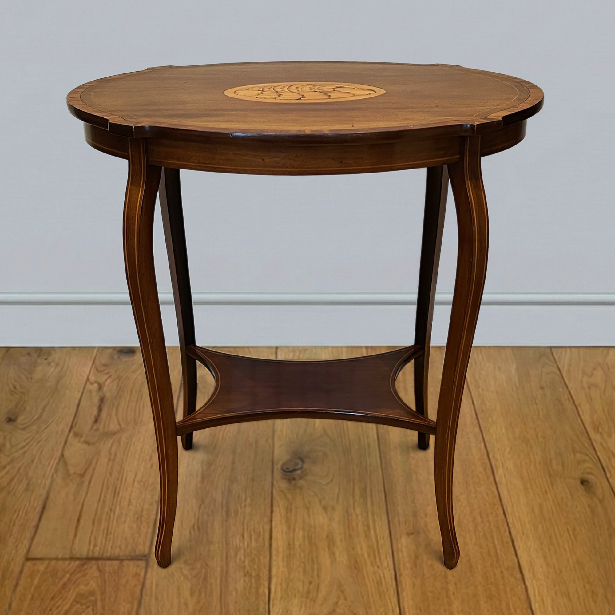 This very elegant Edwardian table has an oval top and has four canted corners and has boxwood cross banding, with boxwood inlayed just around the cross banding.