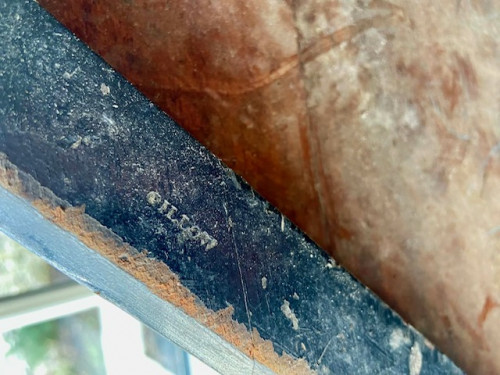 The table top has a moulded edge and has four turned legs which are finished off with pad feet. It has a lower tier which has Egyptian style spindles below.