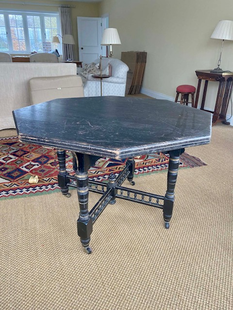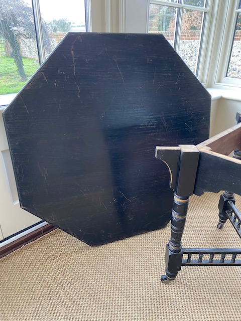 An ebonised octagonal centre table, stamped by Gillows circa 1900.